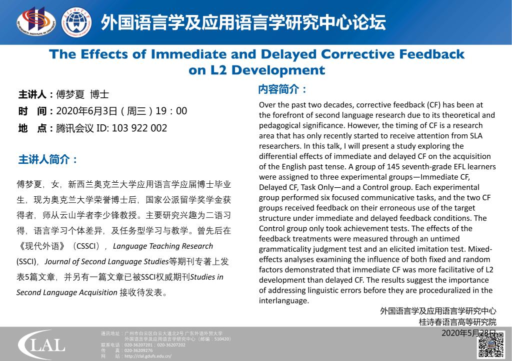 讲座信息:即时与延后纠错反馈对二语养成的不同影响